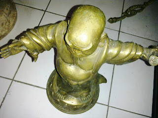 Entah apakah ini termasuk patung Julaihut (Buddha Tertawa) atau Dewa Bumi atau dewa apa kami tak terlalu paham. Yang pasti patung kuningan hollow ini memiliki detil lekukan yang baik dan realistis.
