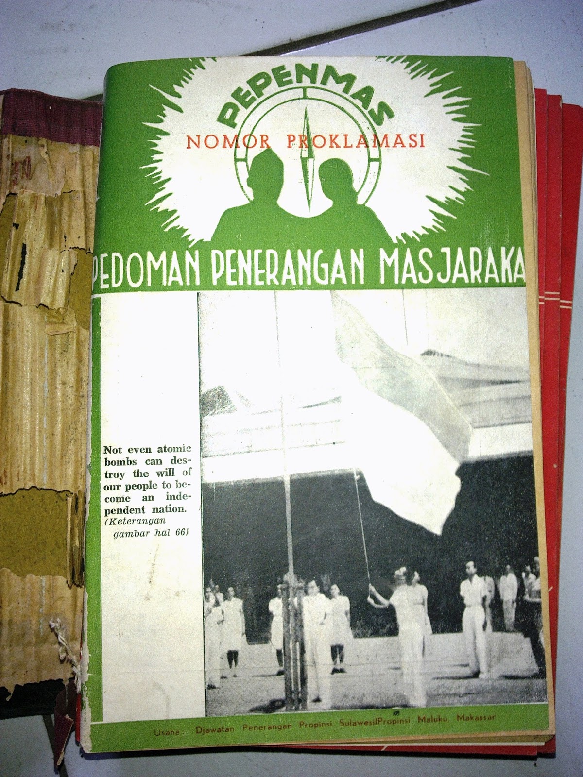 Pada momen jelang perayaan hari kemerdekaan RI tercinta pada 17 Agustus nanti, secara kebetulan kami menemukan salah satu pernik lembaran sejarah negeri ini dalam wujud lembaran - lembaran usang bertajuk Mimbar Penerangan dan Pedoman Penerangan Masjarakat (Pepenmas) seri Nomor Proklamasi.