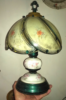Lampu ranjang lawas cantik yang banyak dijumpai pada tahun 70-an atau 80-an. Lazimnya diletakkan di meja kecil samping ranjang tempat tidur. Biasanya lampu semacam ini merupakan produksi Jepang atau Taiwan. Berbahan logam dan keramik. Kapnya terbuat dari bilah bilah kaca dengan frame logam. Kondisi utuh mulus. Tinggal sambung kabel saja.